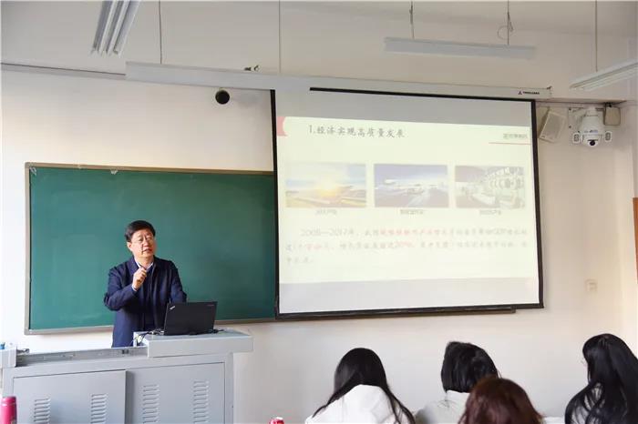 课堂上,王亦农书记巧妙运用制作精良的演示文稿,围绕十九届五中全会重要内容;结合实际事例、自身工作生活经验;播放相关视频并积极与同学们进行互动,丰富了课堂内容,活跃了课堂气氛。王书记还对同学们讲:“你们是幸福的一代。”通过今昔对比,讲述国家发展进程,使同学们更进一步认识到,当下的幸福生活来之不易;激励在场同学奋进努力,为个人的美好未来以及祖国的伟大复兴而不懈奋斗。