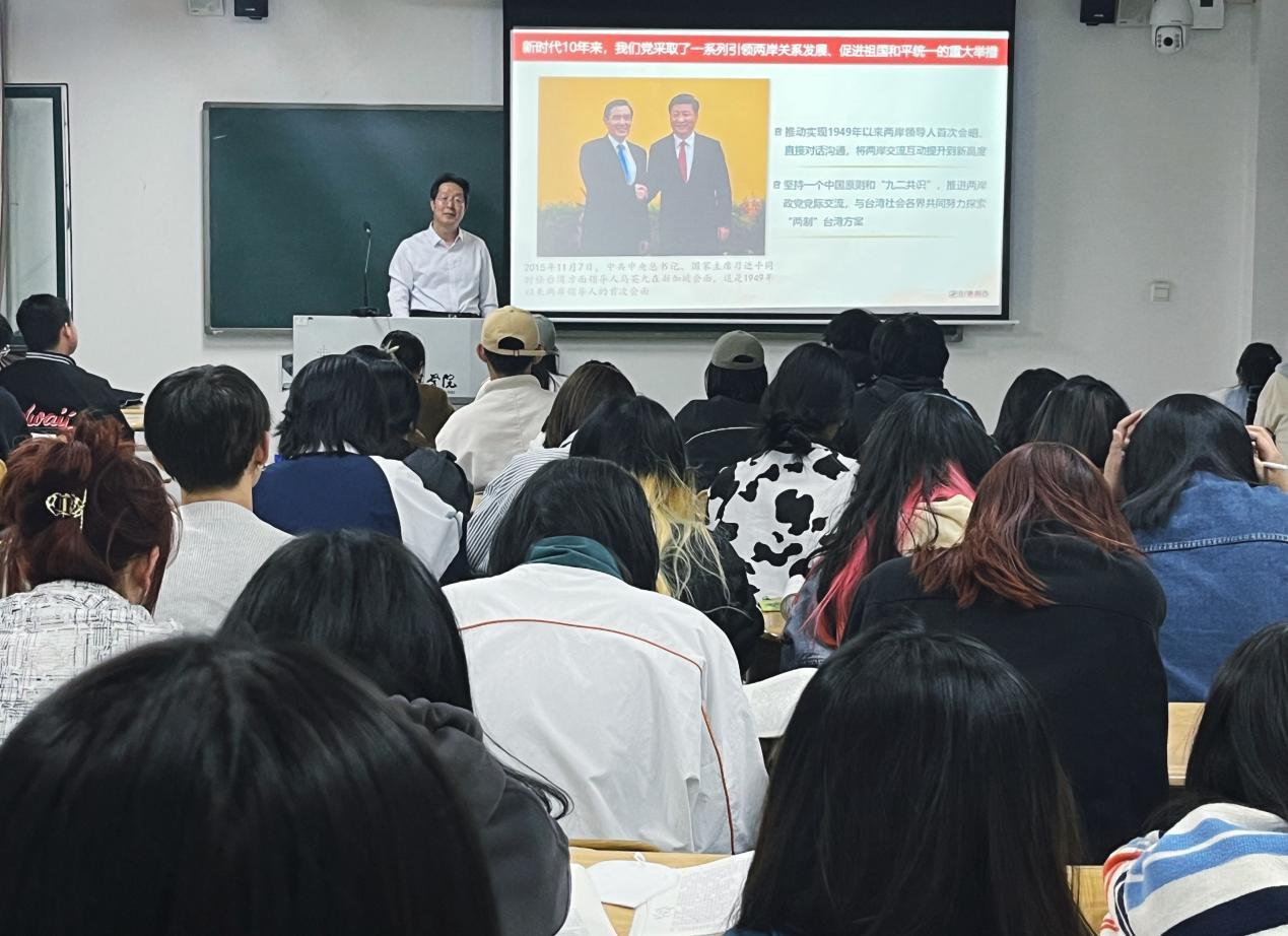 郭文平教育引导同学们,要像习近平总书记在党的二十大报告中指出的那样,“立志做有理想、敢担当、能吃苦、肯奋斗的新时代好青年,让青春在全面建设社会主义现代化国家的火热实践中绽放绚丽之花”。同学们纷纷表示被郭书记的精彩讲授所感染,思想上很受启发,同时也对“推进祖国统一”有了更为深刻的理解和感悟,作为新时代的青年,作为新时代的大学生,我们要牢记历史使命,要学好专业知识,为实现中华民族的伟大复兴贡献自己的力量。