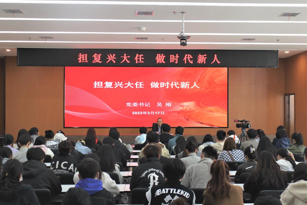 3月17日下午,校党委书记吴刚在图书馆多功能厅讲授2023年春季学期“开学第一课”。本次课程以线上线下方式进行。