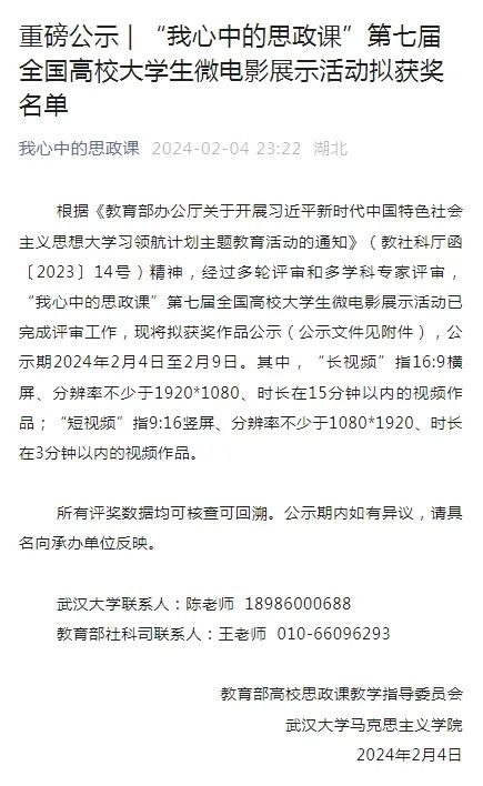 近日,由教育部高校思政课教学指导委员会主办的“我心中的思政课”第七届全国高校大学生微电影展示活动落下帷幕,我校ok138cn太阳集团529组织师生拍摄的微电影《看 新时代》荣获本科组全国二等奖!