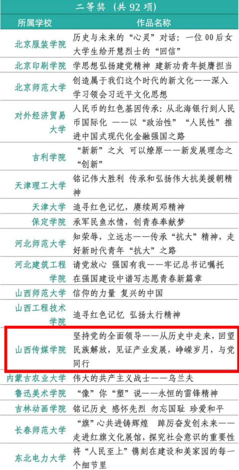 新思想引领新征程,新青年建功新时代。近日,第七届全国高校大学生讲思政课公开课展示活动已完成评审工作。其中,由我校播音主持学院2021级学生孙唯韬、王喆、王勃景,2022级学生谭舒倚,新闻传播学院2021级学生刘辰明,文化创意与管理学院2021级学生郭馨璟共同创作,赵岩老师指导的作品《坚持党的全面领导——从历史中走来,回望民族解放,见证产业发展,峥嵘岁月,与党同行》获得本科组二等奖的优异成绩。作品通过讲述大同煤矿万人坑、晋华纺织厂的感人故事,展现了中国共产党如何带领人民反抗侵略者压迫,并进行社会主义新时代建设。